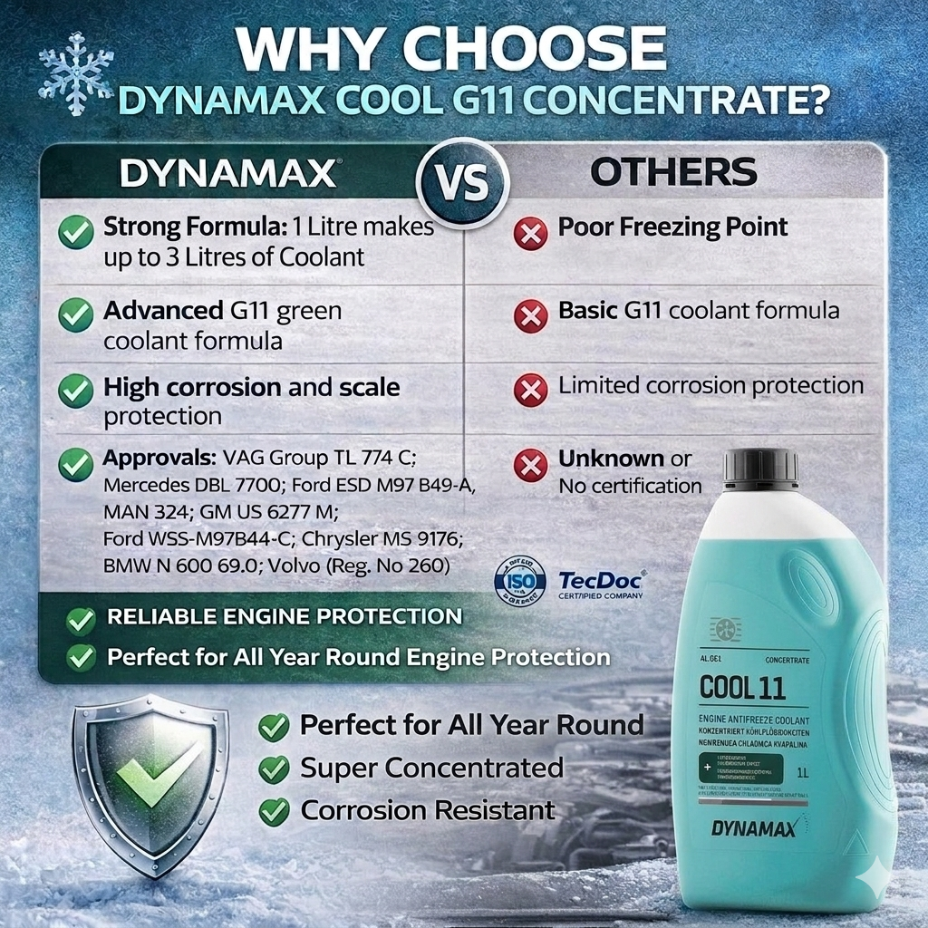 Get maximum flexibility and value with DYNAMAX G11 coolant concentrate, a high-performance green antifreeze designed for reliable engine protection in UK conditions 🇬🇧🚗
